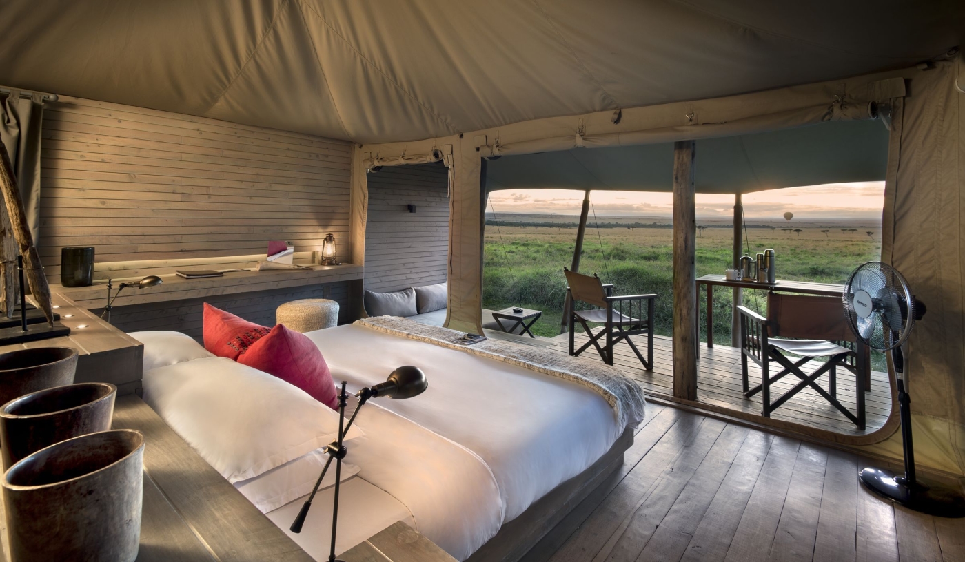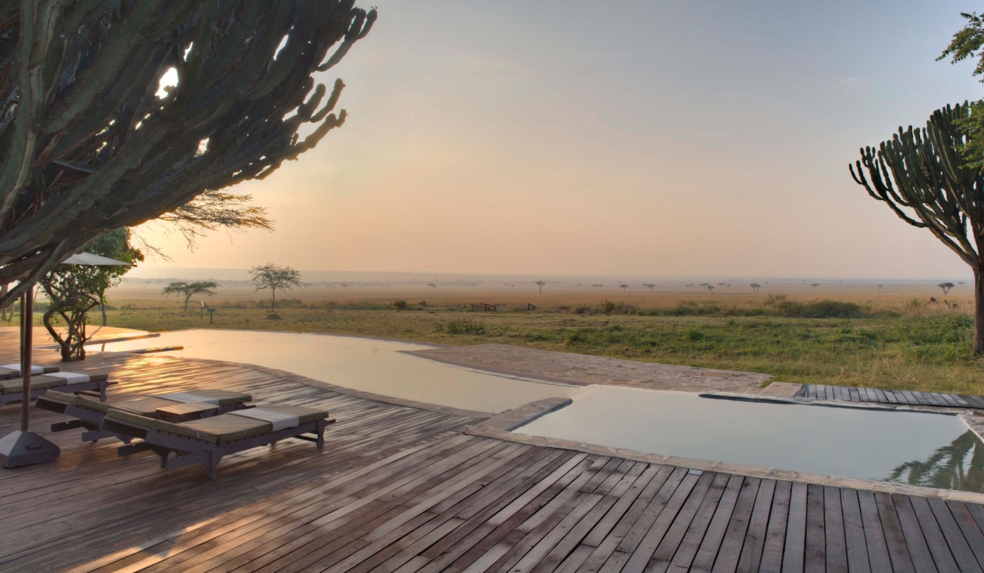 Facilities include a rim-flow pool surrounded by lush lawns with views across the Mara, a split-level dining area designed around an interactive kitchen and vegetable garden, the central Tusker Bar, a massage tent with therapists on hand between game drives, plus a safari shop and football pitch. There's also a dedicated WILDchild programme for children, with activities ranging from nature walks and beading to spear throwing and fire making.