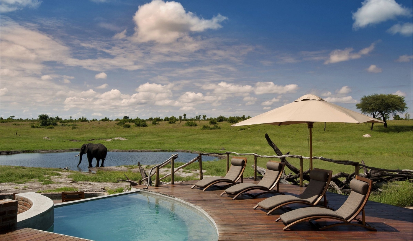 Somalisa Camp is set beneath a grove of acacia trees on the edge of a seasonal floodplain, looking out over extensive savannah grasslands. The stylish camp was built to blend into the natural environment and prides itself on its exceptionally high standards of guiding. Its seven tastefully furnished sailcloth tents feature king-size beds, wood-burning fireplaces, private decks on which to soak up the views, and indoor/outdoor bathrooms with romantic copper bathtubs. The main area is comprised of several open-sided Bedouin-style tents on split-level decks that cover the lounge and dining area. The swimming pool and shared main areas boast the best view of the waterhole, which attracts large herds of elephants, sometimes hundreds at a time during the dry months of September and October. Activities include walking safaris, game drives, birding and cultural visits.