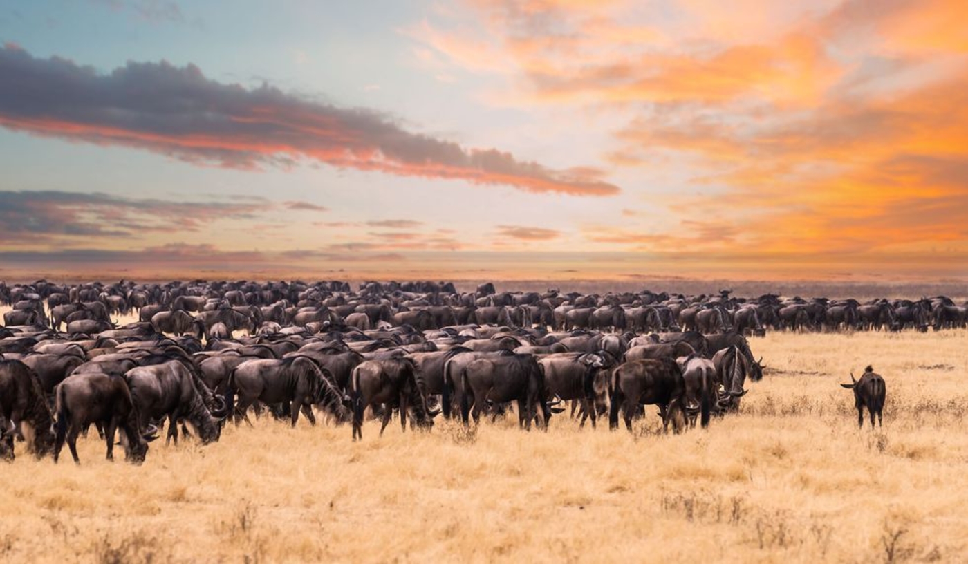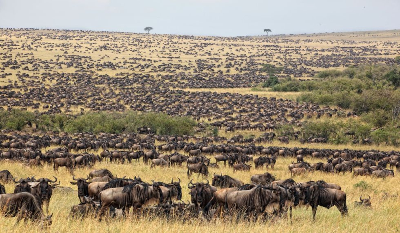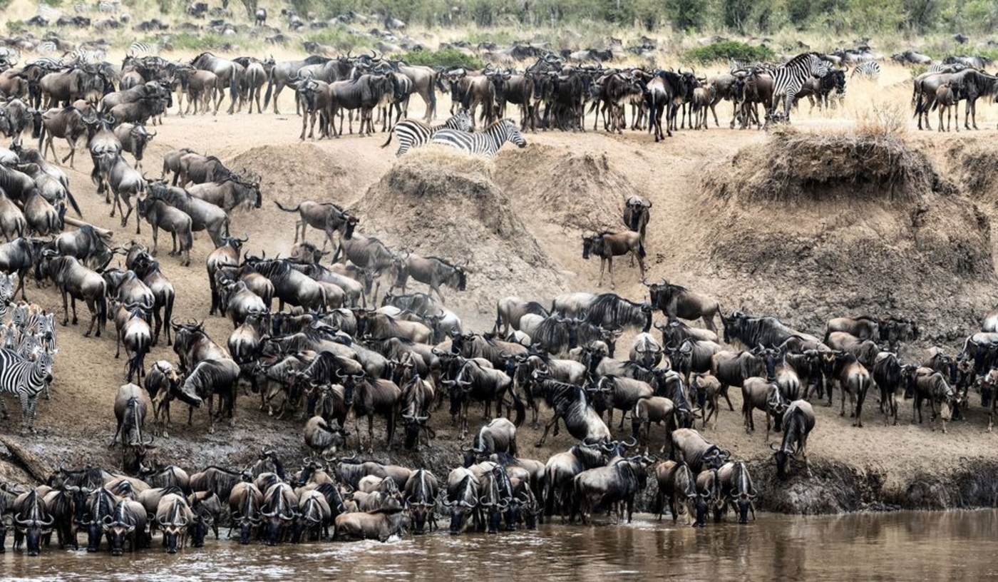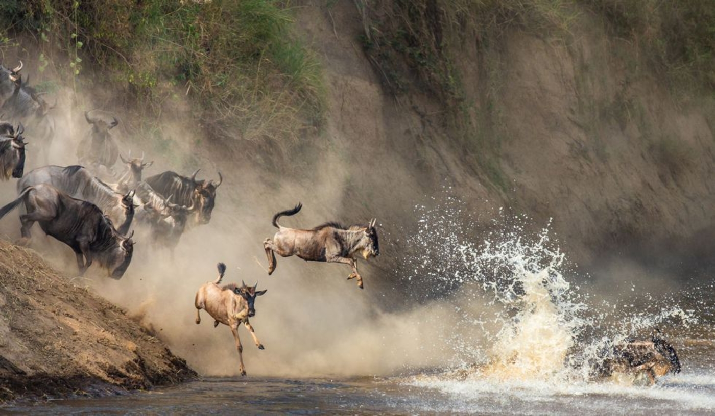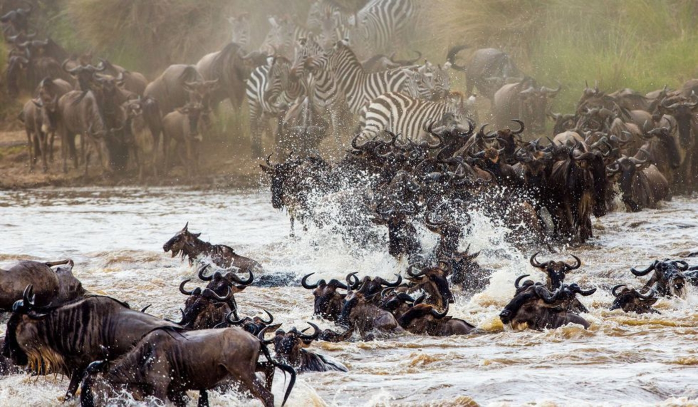 Witness the greatest wildlife show on earth, the annual migration from Tanzania’s Serengeti to Kenya’s Masai Mara of well over a million hungry wildebeest and zebra